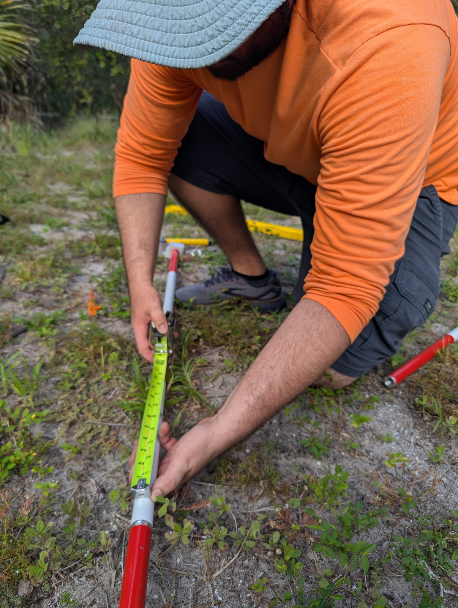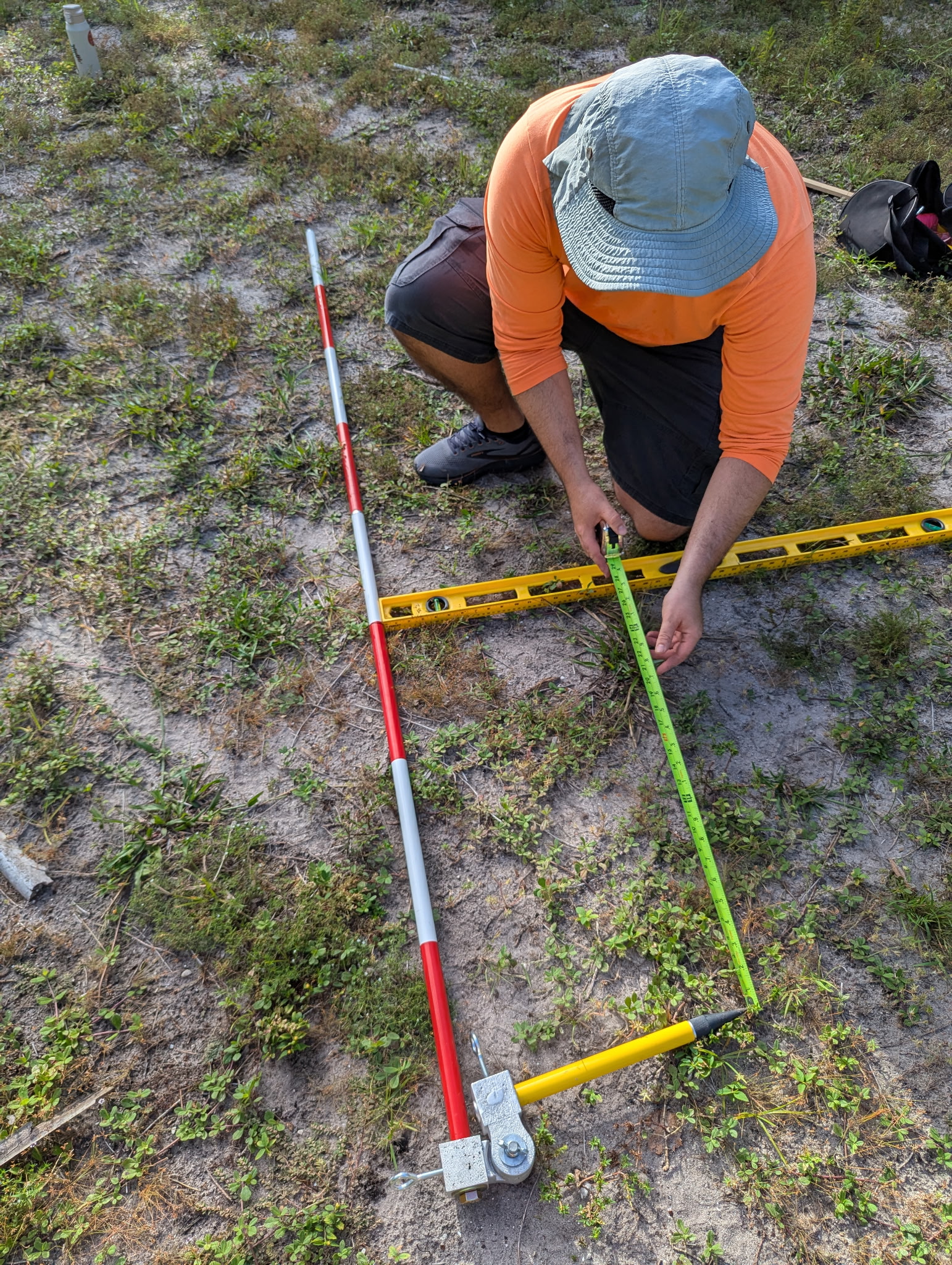 First find the length of the overall rod configuration from rod tip to the desired mark on plumbing rod. To find this lay the configuration on the ground and place a bar level at the desired mark, perpendicular to the plumbing rod. Take a tape measure and measure from rod tip to the bar level.