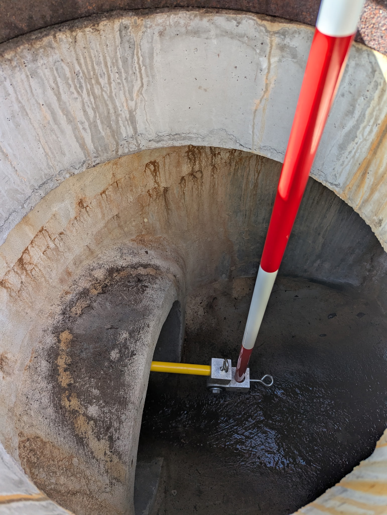 To get a pipe measure, first get the pipe invert measure, then push the rod tip upward towards the inside upper lip and measure. ( "pipe invert depth" - "upper pipe lip depth" = "pipe size" )
